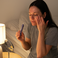 Take a pea-sized amount of the cream. Using your ring finger, dab it around the under-eye area, outer corners, and along the brow bone.